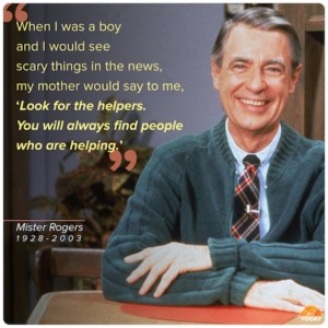 During times like these, I like to think about something that the late Fred Rogers said: “When I was a boy and I would see scary things in the news, my mother would say to me, “Look for the helpers. You will always find people who are helping.”