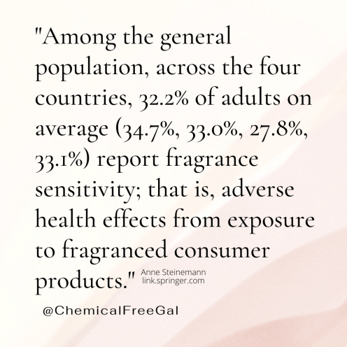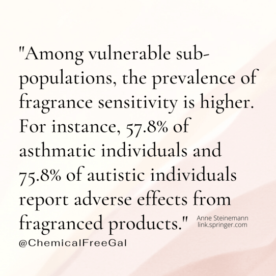 Each of these exposure contexts represents a potentially involuntary exposure, and one that can pose risks to an individual’s health and their ability to have access and opportunities in society. Further, all types of fragranced products and exposure contexts studied were associated with adverse health effects.