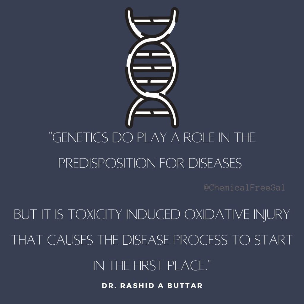 “Genetics do play a role in the predisposition for diseases but it is toxicity-induced oxidative injury that causes the disease process to start in the first place.”