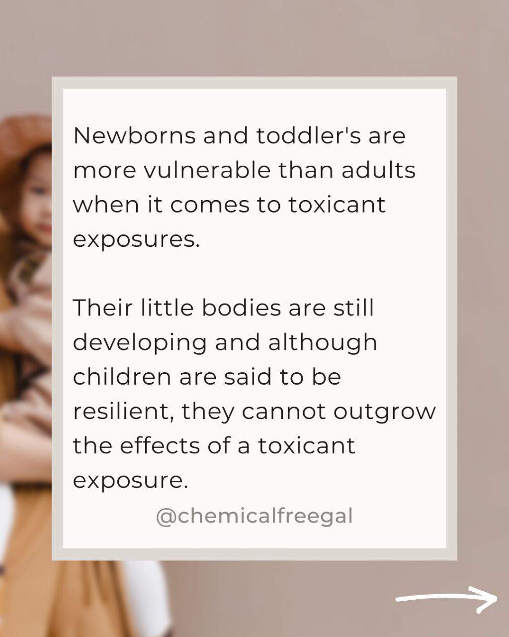 Newborns and toddler’s are more vulnerable than adults when it comes to toxicant exposures.