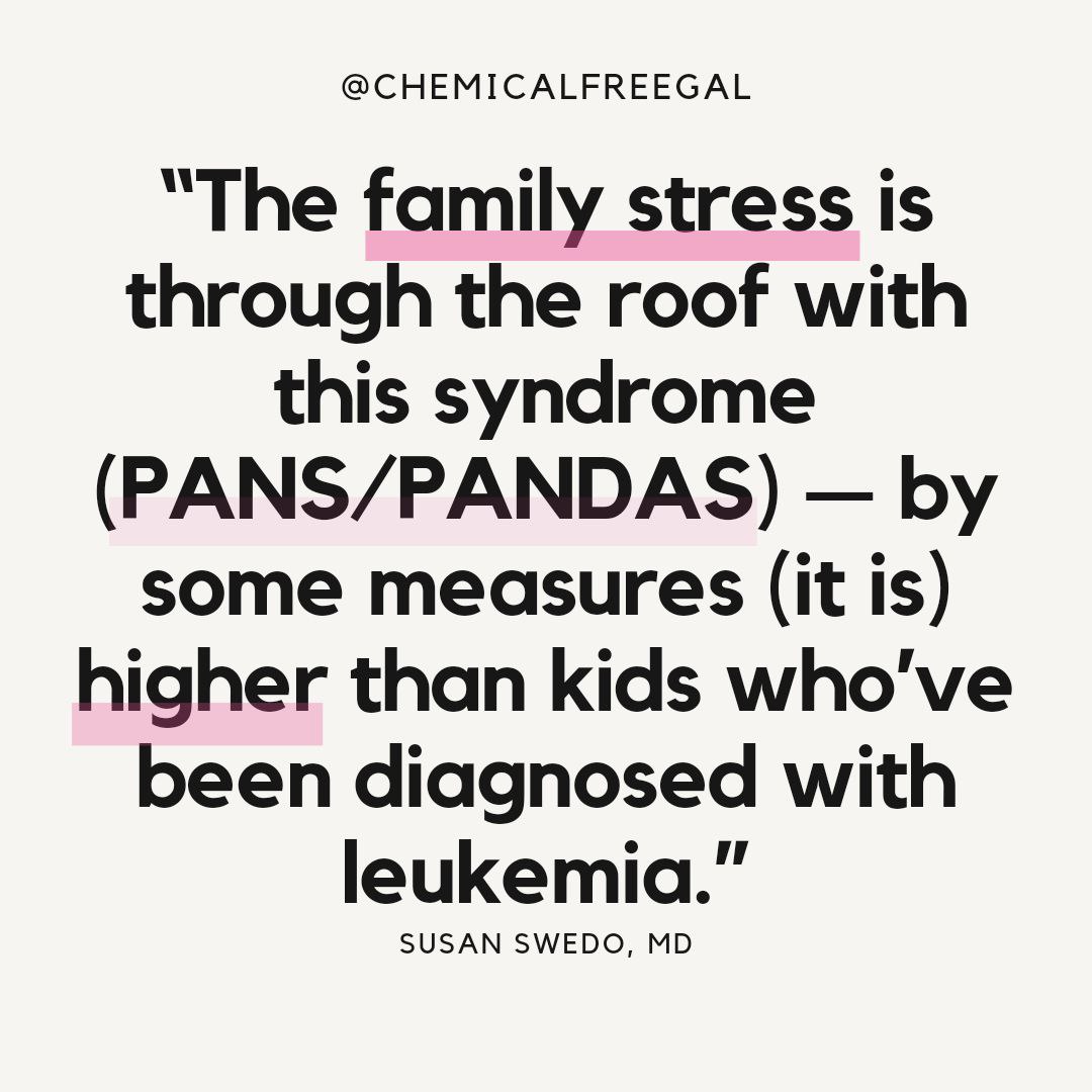 “The family stress is through the roof with this syndrome (PANS/PANDAS) — by some measures (it is) higher than kids who’ve been diagnosed with leukemia.”