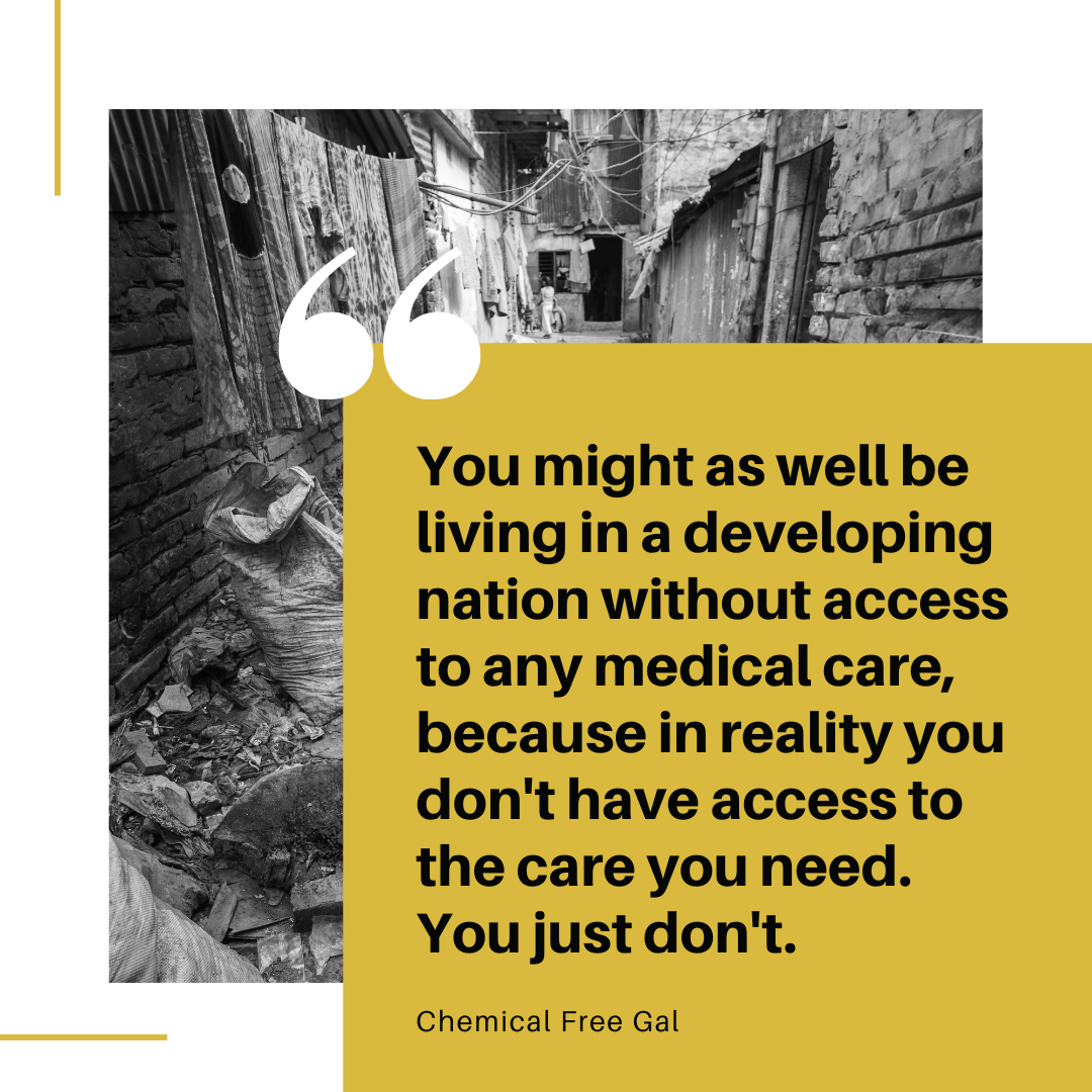 And here comes the second punch to your gut. This one actually hurts more than the last one. You stare blankly at the wall wondering how is it that you live in a developed nation with all of the resources in the world, but there is nothing for you. Nothing to help stop the misery that your beautiful child is experiencing. You might as well be living in a developing nation without access to any medical care, because in reality you don’t have access to the care you need. You just don’t.
