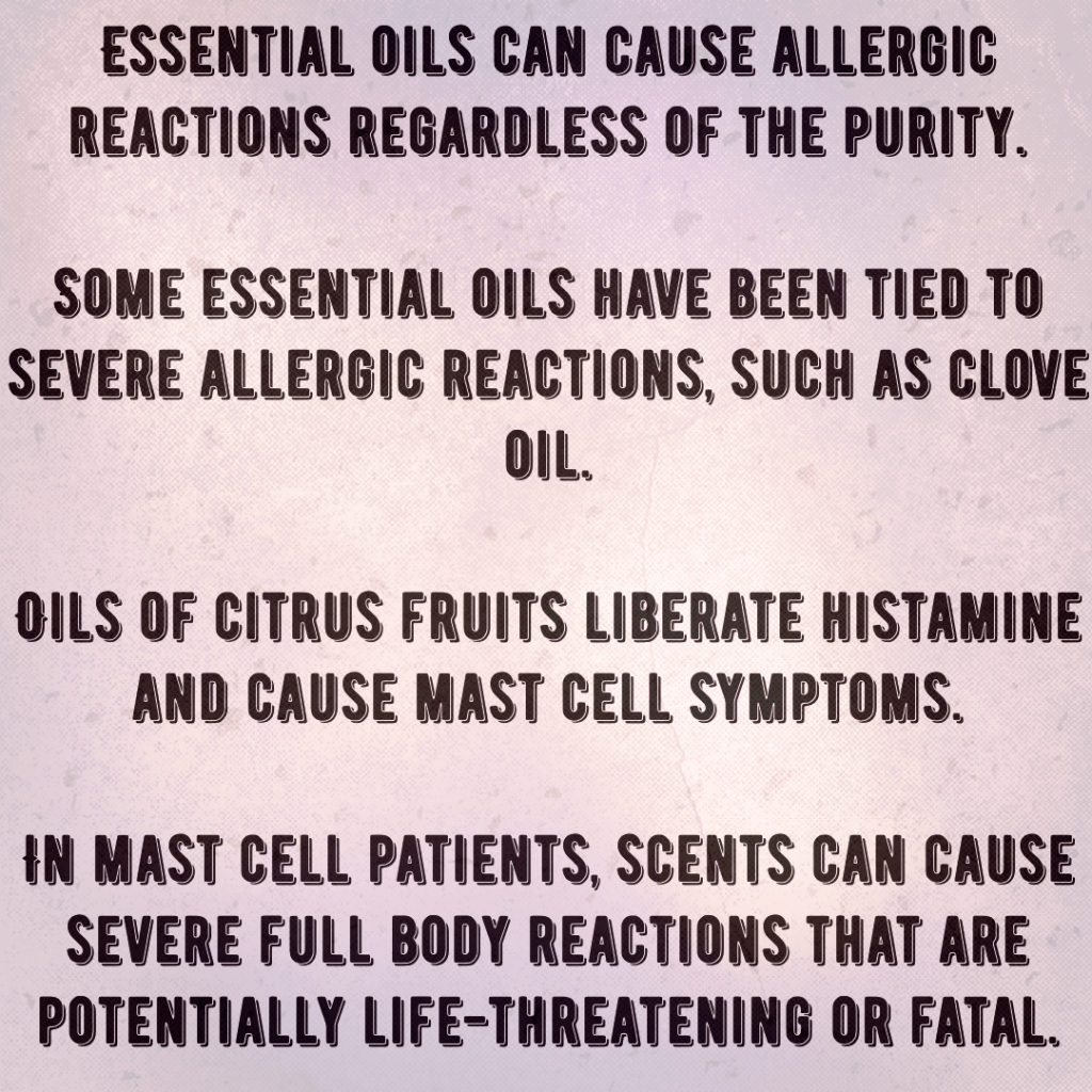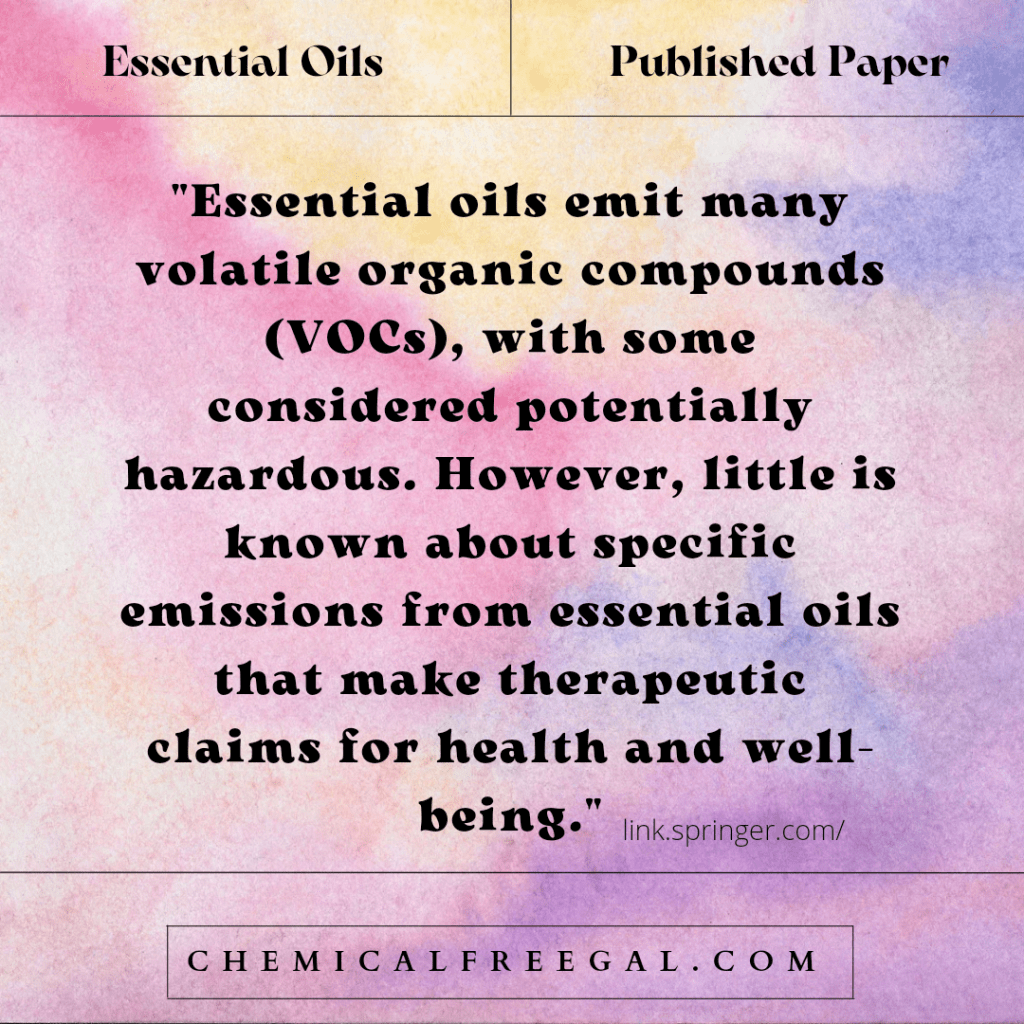 Over the years, I’ve been asked hundreds of times about diffusing, ingesting, and applying essential oils to the skin. In the links below, you will find information to help you make an educated decision. If you already use EOs and are happy, that is your choice, but I choose to avoid them as much as possible. What I share, and what I have been sharing for over a decade about EOs, is because I was physically harmed, as have many other women I know. That said, I don’t believe in acting like a bully because someone enjoys something that I and others have found to be unhealthy or unsafe. However, I will continue to educate and bring awareness to this topic.