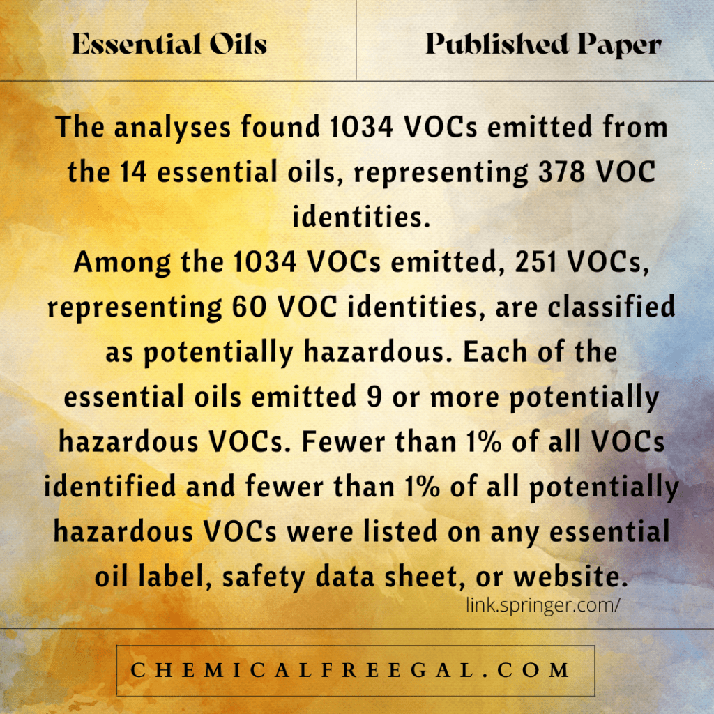 Volatile Chemical Emissions from Essential Oils (both regular and organic). Click Here